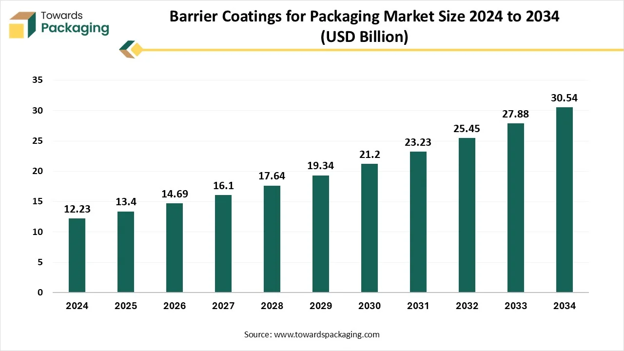 As highlighted by Towards Packaging research, the global barrier coatings for packaging market, valued at USD 13.4 billion in 2025, is expected to reach USD 30.54 billion by 2034, registering a CAGR of 9.6% throughout the forecast period.