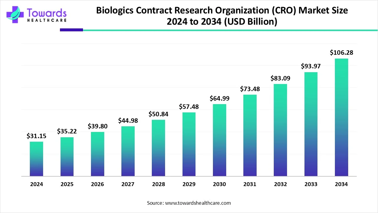 Biologics CRO Market to Soar USD 106.28 Billion by 2034, Driven by Rising Outsourcing of Complex Drug Development