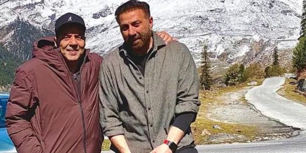 Actor Dharmendra has posted an image with his son Sunny Deol from a trip to the mountains. The photograph shows them posing for the camera with a large, snow-capped mountain behind them. Dharmendra has his hand around Sunny and both are grinning for the picture.