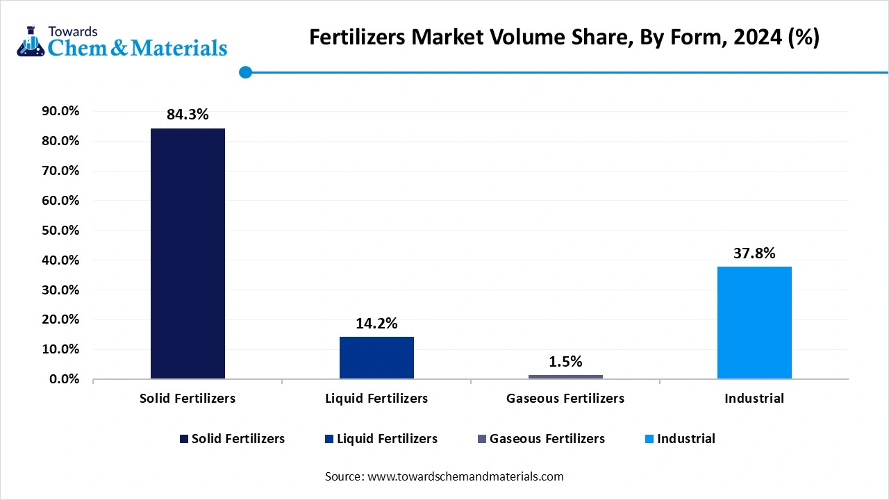• By form, the solid fertilizers segment led the market with the largest Volume Share of 84.3% in 2024.