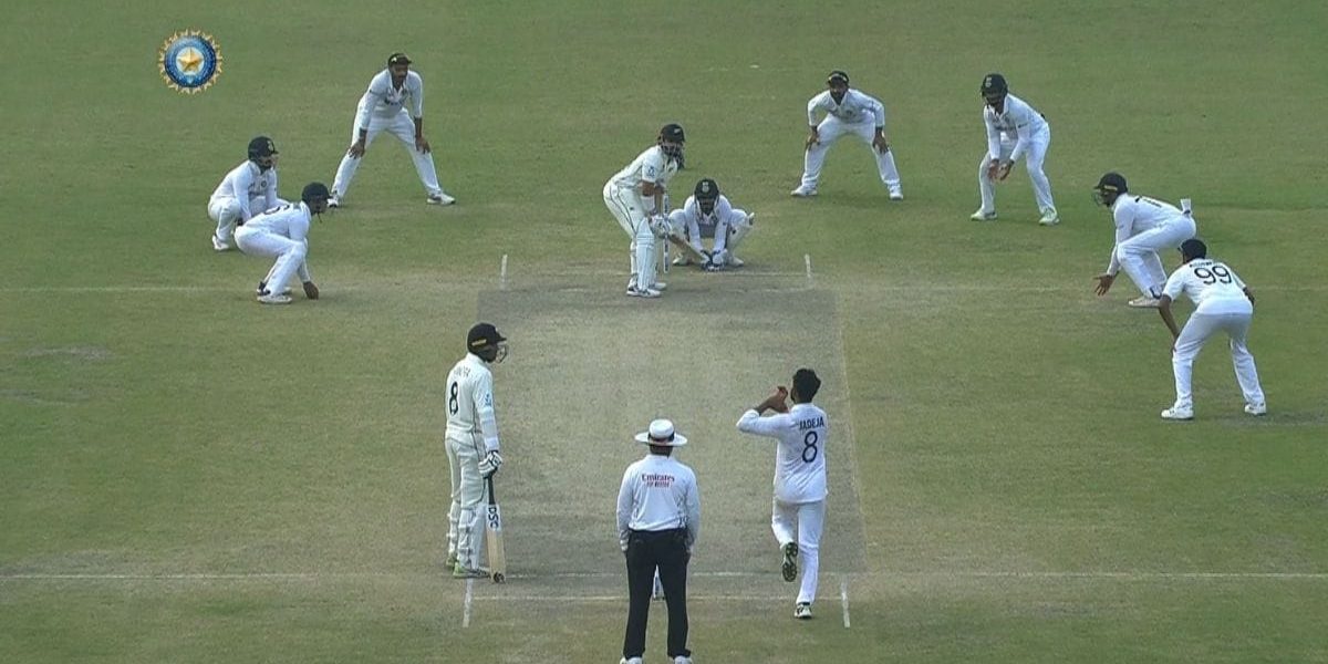 Although debutant Rachin Ravindra put up a great resistance, it seemed as if it was a matter of a moment before either he or Azaj would lose their wicket. That is when the bad light came into play. With their high-tech machinery, Umpire Nitin Menon kept checking the light’s condition between the over. And once Jadeja bowled the 94th over of the match, which Ajaz Patel safely negotiated, Menon consulted his partner Umpire Virendra Sharma to call it a day.