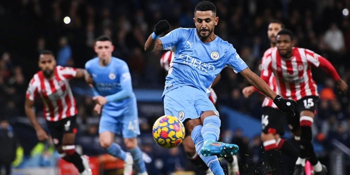 Raheem Sterling’s run drew a rash sliding tackle from Mads Roerslav, conceding a penalty that Mahrez converted into a goal.