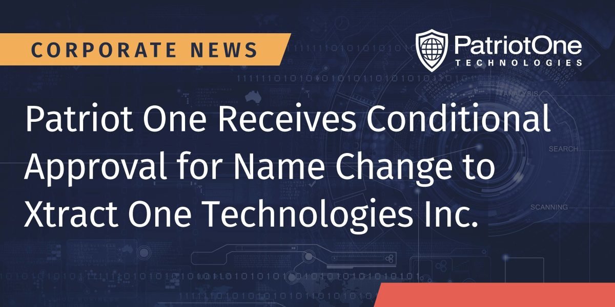 Patriot One Receives Conditional Approval for Name Change to Xtract One Technologies Inc.