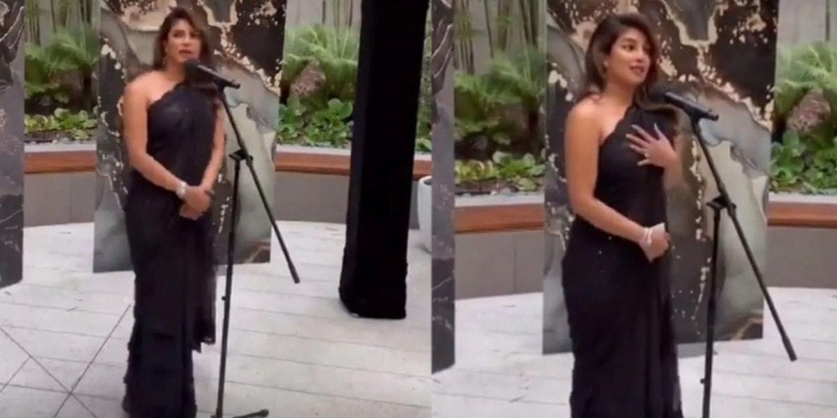 Priyanka Chopra was one of the hosts at the pre-Oscar party held in Beverly Hills on Wednesday. She not simply made a style statement in a black saree but also gave a great speech. The actress talked about her journey, meeting Nick Jonas and the presence of South Asian figures in Hollywood at the party, organised to celebrate South Asian excellence in films.