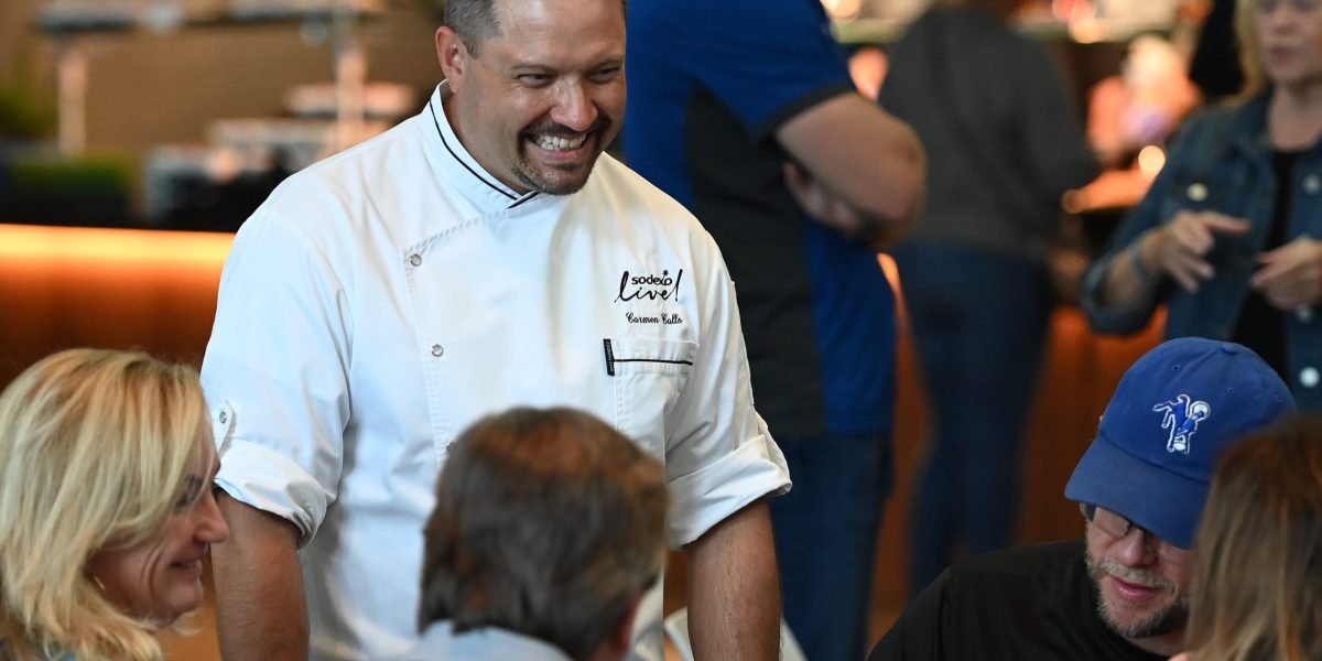 Sodexo Live!’s SVP Corporate Executive Chef Carmen Callo mingling with guests at Lucas Oil Stadium in Indianapolis, Indiana