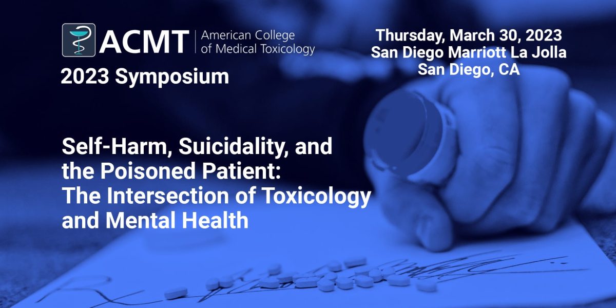 The American College of Medical Toxicology (ACMT) is pleased to present a full-day symposium exploring the intersection of medical toxicology and mental health. Lead by distinguished experts in Medical Toxicology, Psychiatry, Psychology, Medical Ethics, Emergency Medicine, the event, titled “Self-Harm, Suicidality, and the Poisoned Patient: The Intersection of Toxicology and Mental Health,” will take place on Thursday, March 30, 2023 at the San Diego Marriott La Jolla. This activity precedes ACMT’s 2023 Annual Scientific Meeting, a three-day conference taking place at the same location.