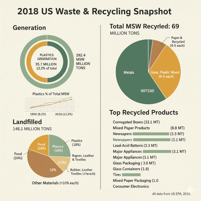 The 2018 data underscores the importance of sustained efforts in waste management and recycling. As recycling infrastructure improves and public participation grows, the U.S. continues to make progress toward reducing landfill dependence, conserving resources, and cutting greenhouse gas emissions.